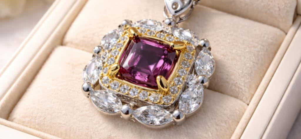 Grenat rhodolite d’Afrique de l’Est serti sur argent.